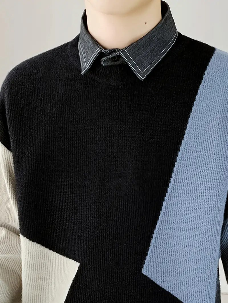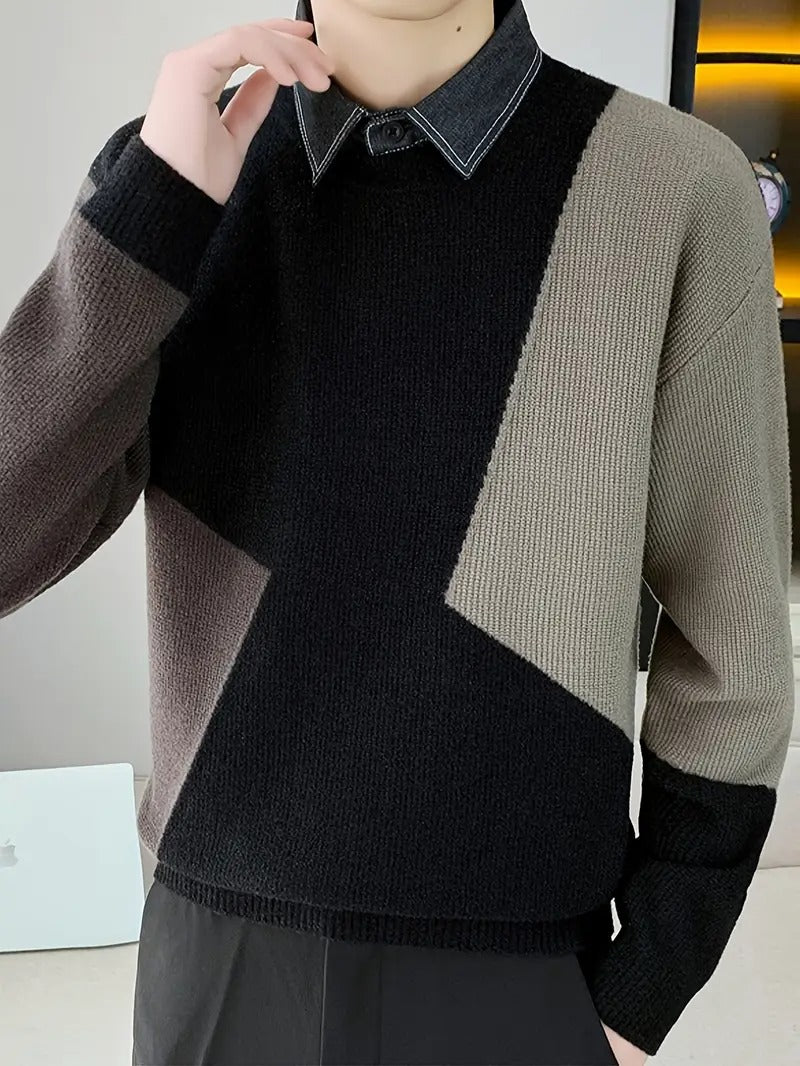 Belangrijkste Kenmerken Van Deze Heren Trui Met Geometrische Vlakken
